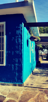 El cliente solicitó mejorar y cambiar la estética exterior de la casa de balneario de los años 50. Se retiró la piedra laja de la vereda perimetral y se volvió a re colocar, asentándola en un contrapiso nuevo con malla electro soldada. Además se realizó el bolseado de las paredes exteriores de ladrillo, colocación de nuevos zócalos de piedra y posterior pintura con tonalidad azul petróleo.